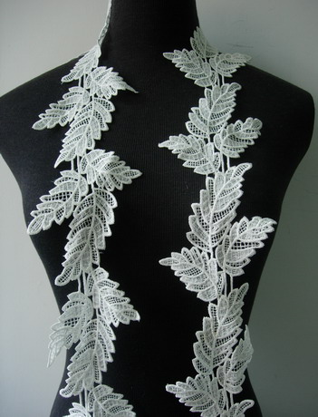 OT129 3 6/8" Wide Leaves Leaf Venise Venice Lace Off-white, made of polyester material, great for embellishing fashion... |