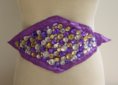 HP09 Long Hip Belt Sequin Bead Applique Silver with Gems, 100% hand made, it is perfect for belly dance dress, skating dress, tutu dress, scarf, hip...