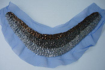 HP54 3Tone Bugle Beaded Applique Collar Hipbelt Silver Grey Brow