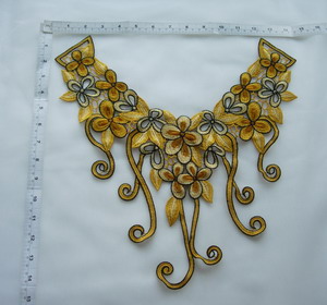 VK534 Yellow-gold Floral Neck Collar Lace Venise Applique