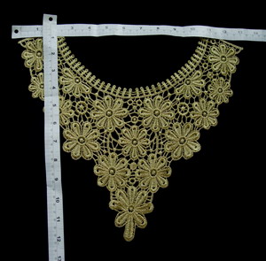 VK425 Flowers Flora Collar Yoke Metallic Gold Trim Applique