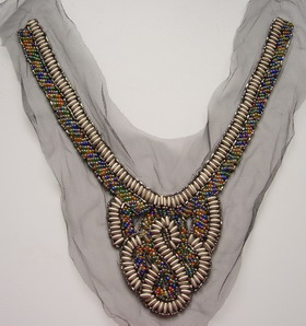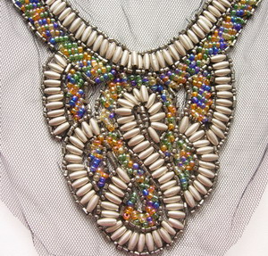 NK301 Stylish Neckline Collar Colorful Bead Embroidery Applique, this is handmade motif and unique design, made of beads, stud and netting, this is stunning beadwork neckline, great for fashion dress or sewing project.
