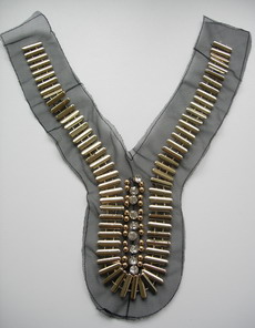 NK308 Embellished Y-Neck Collar Diamante Beaded Tulle Applique, this is handmade motif and unique design, made of beads, stud and netting, this is stunning beadwork neckline, great for fashion dress or sewing project.